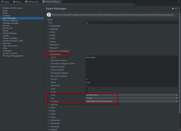 The solution is reconfiguring the second "Horizontal" entry in Project Settings > Input Manager. Instead of "Get Motion From All Joysticks", choose any entry for a non-existent joystick, i.e. "Joystick 8". You may do it also with the second "Vertical" entry, to prevent any other forced inputs coming from joystick devices.